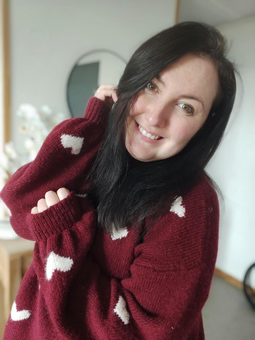 Découvrez le Sweet Cœur, le pull qui fait rimer féminité et douceur avec un charme irrésistible. Sa maille bordeaux profonde, réchauffante et raffinée, est délicatement parsemée de petits cœurs beige, pour une touche romantique subtile et élégante.