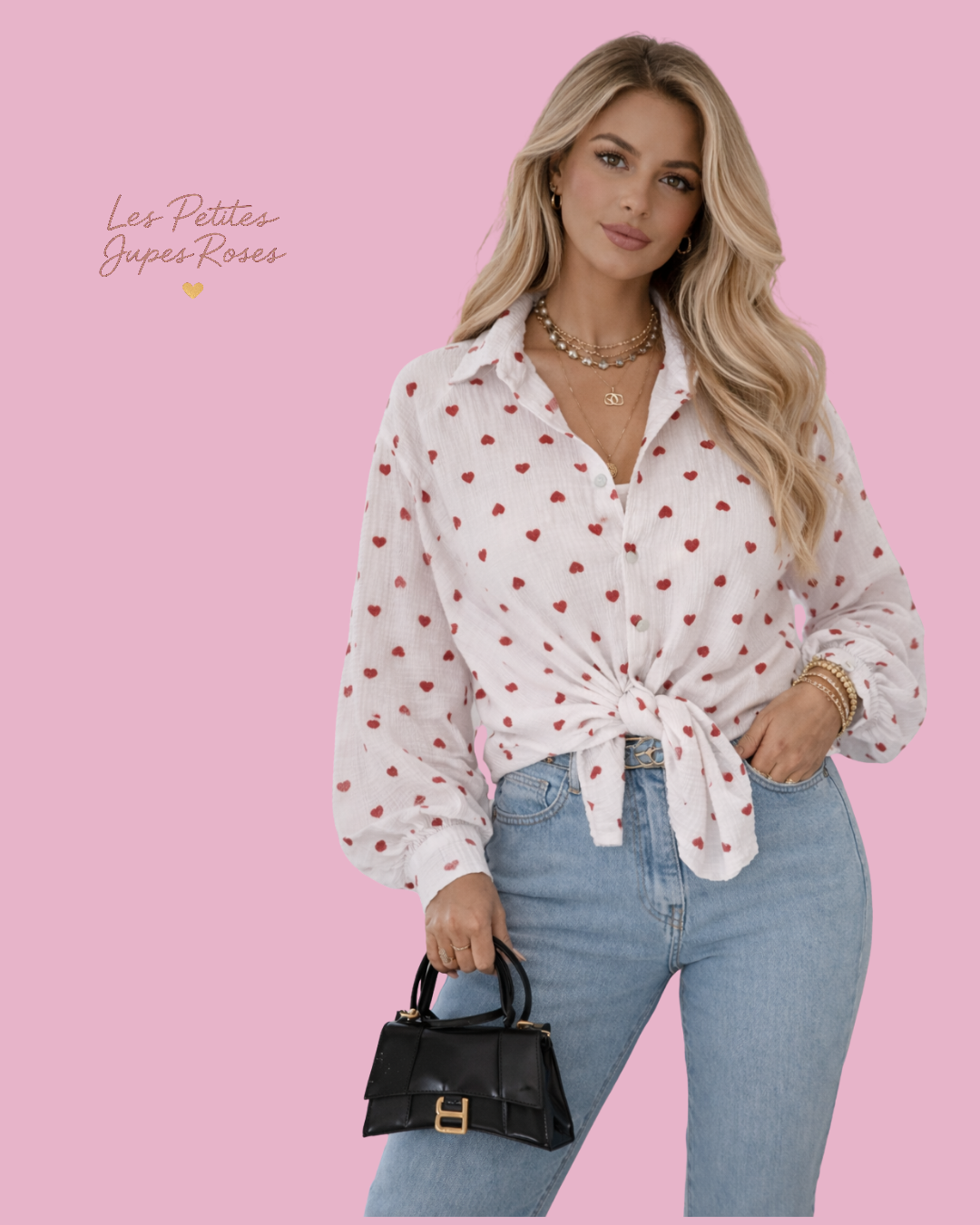 Craquez pour cette chemise délicate au motif petits cœurs roses, parfaite pour une allure romantique et lumineuse. Confectionnée dans une matière légère et fluide, elle offre un tombé naturel et un confort absolu tout au long de la journée.