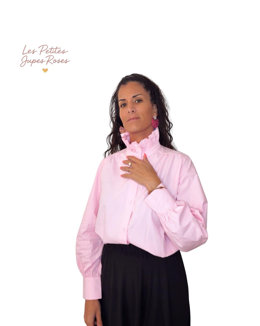Craquez pour cette chemise rose délicate, à la fois élégante et pleine de caractère. Son col montant subtilement volanté apporte une touche romantique et raffinée, tandis que ses manches légèrement bouffantes et ses poignets structurés soulignent une silhouette féminine et moderne.